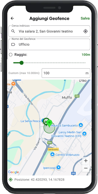 Basta un tap per definire la posizione e attivare il Geofence di sicurezza. Se il veicolo esce da quest’area virtuale, l’applicazione lancia subito un allarme antifurto, assicurandoti una protezione costante.